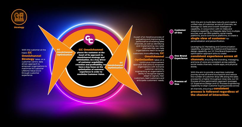 As part of an iterative process of evaluating and improving the performance of existing sales channels, as well as identifying and implementing new sales channels that can help organizations reach its target customers more effectively, GC Omnichannel Optimization takes on a continuous improvement methodology. As part of this continuous improvement approach, we aim to empower organisations with extreme customer-centricity capability, augmenting the organization’s ability to recognize signals, adapt to signals, hear customers, lead customers and anticipate customers’ needs. Leveraging a mix of GC capability and practices, the following elements inform the comprehensive GC Omnichannel Optimization approach: