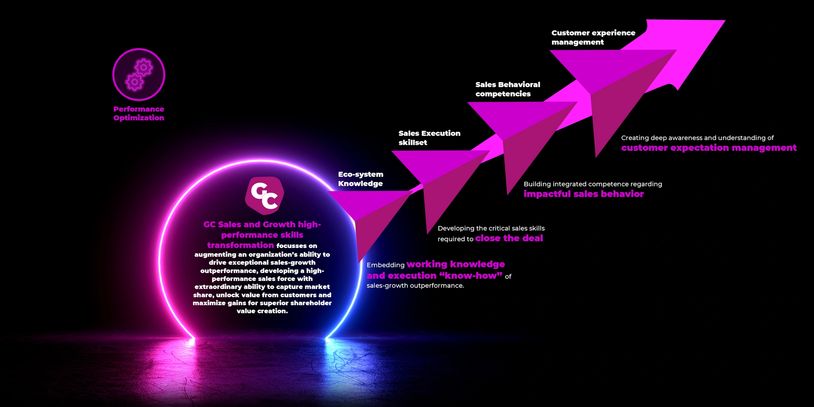 GC Sales and Growth Capability Optimization takes on a customer-centric approach when reimagining the fundamentals of the sales value chain, reorganizing the ways of working to enable dynamic, fast paced agile sales teams to respond quickly and effectively to the needs of the customer. In order to ensure front-line sales professionals have the highest impact when engaging customer and executing Sales initiatives and campaigns, we embed the operational mechanics and performance infrastructure, alongside rapid skills acceleration programmes to develop learning journeys geared towards quick and effective skills and behaviour transformation. In order to instil organic transformation, empowering communities to own the growth narrative, we engineer systemic enterprise-wide culture interventions to hardwire a high-performance culture into the organization’s DNA for sustainable, inclusive, and profitable growth mindsets that shape decision making across every area of the business.